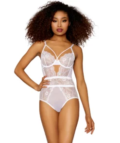 Bodysuit de encaje y malla ecológica y segura negro