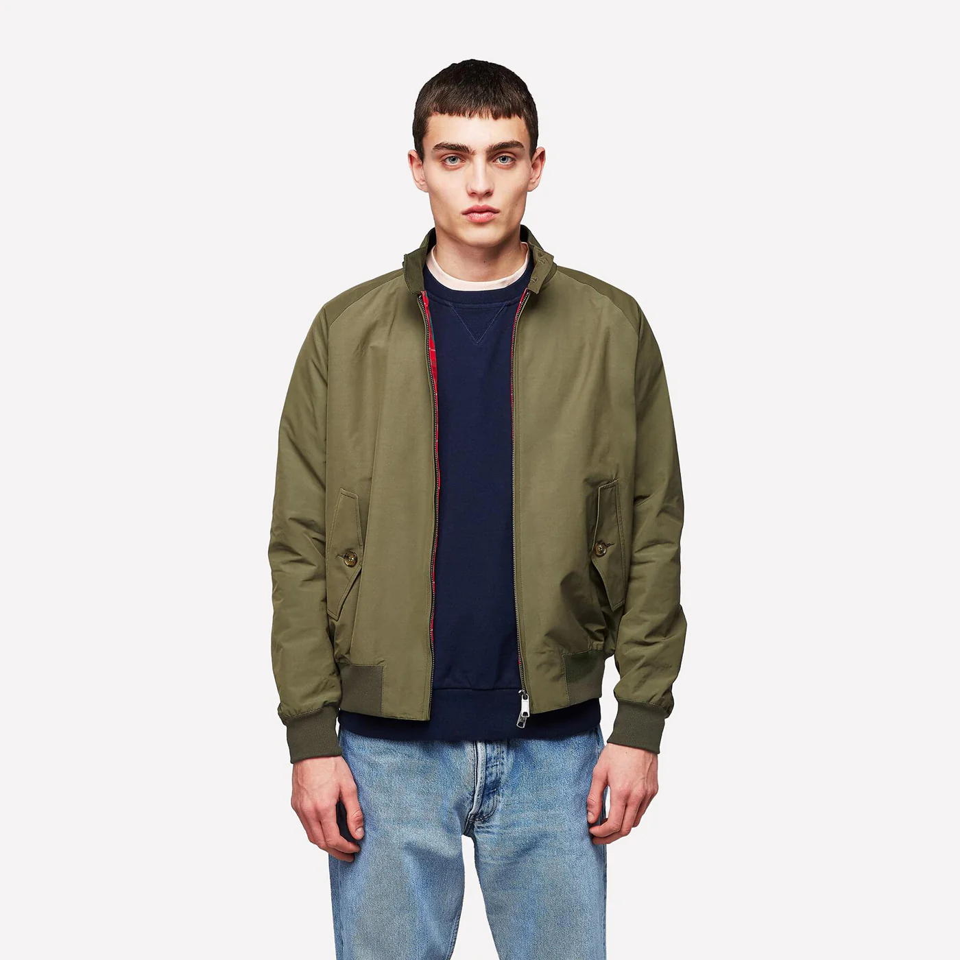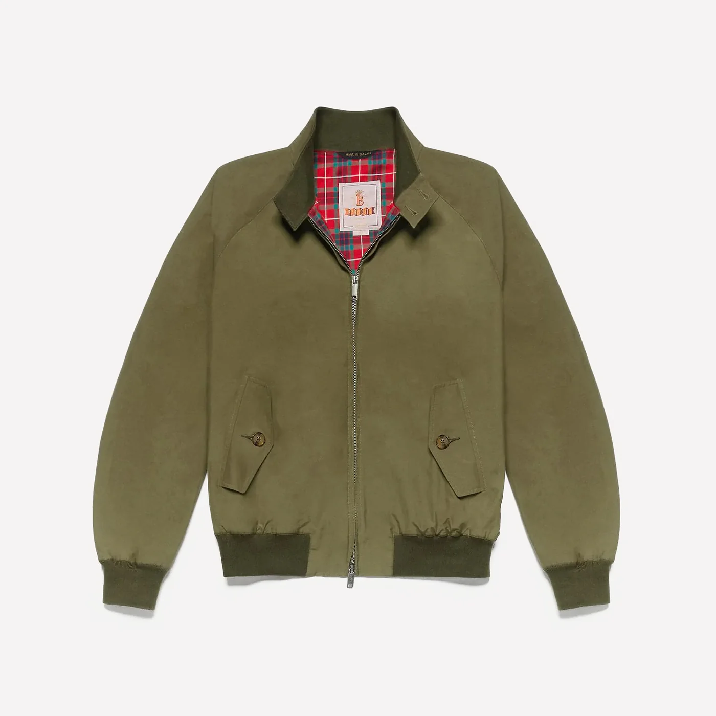 Con su cuello “dog ear” distintivo, cierre de doble botón, cremallera bidireccional y mangas raglán para mayor libertad de movimiento, la G9 Army es perfecta para cualquier aventura. Sus bolsillos profundos y puños/cintura acanalados aseguran funcionalidad y comodidad. Esta chaqueta es ideal para cualquier clima. ¡Elige la Baracuta Harrington G9 Army, un clásico que perdura!