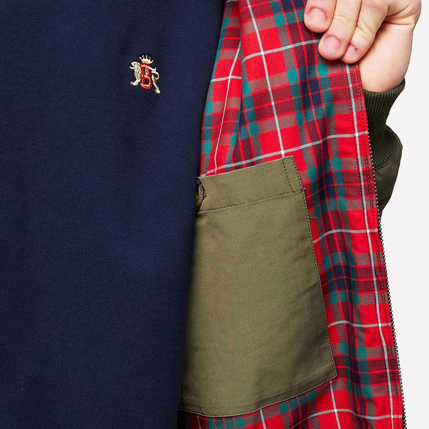 Nuestro icónico forro Fraser Tartan, ahora en tejido Coolmax® transpirable, te mantiene fresco y cómodo. Además, hemos dado un paso hacia la sostenibilidad: nuestra tela Baracuta de mezcla de algodón recibe un tratamiento WR repelente al agua, y estamos comprometidos con prácticas de fabricación responsables.