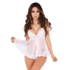 ¡Hola, preciosa! ¿Lista para despertar la sensualidad con nuestro Baby Doll Bluma Lerot? Este clásico en blanco es mucho más que una prenda de lencería; es una experiencia. Imagina la suavidad del encaje acariciando tu piel, un diseño con escote en V que realza tu figura y una sutil abertura que revela tu lado más atrevido. ¡Un verdadero deleite!