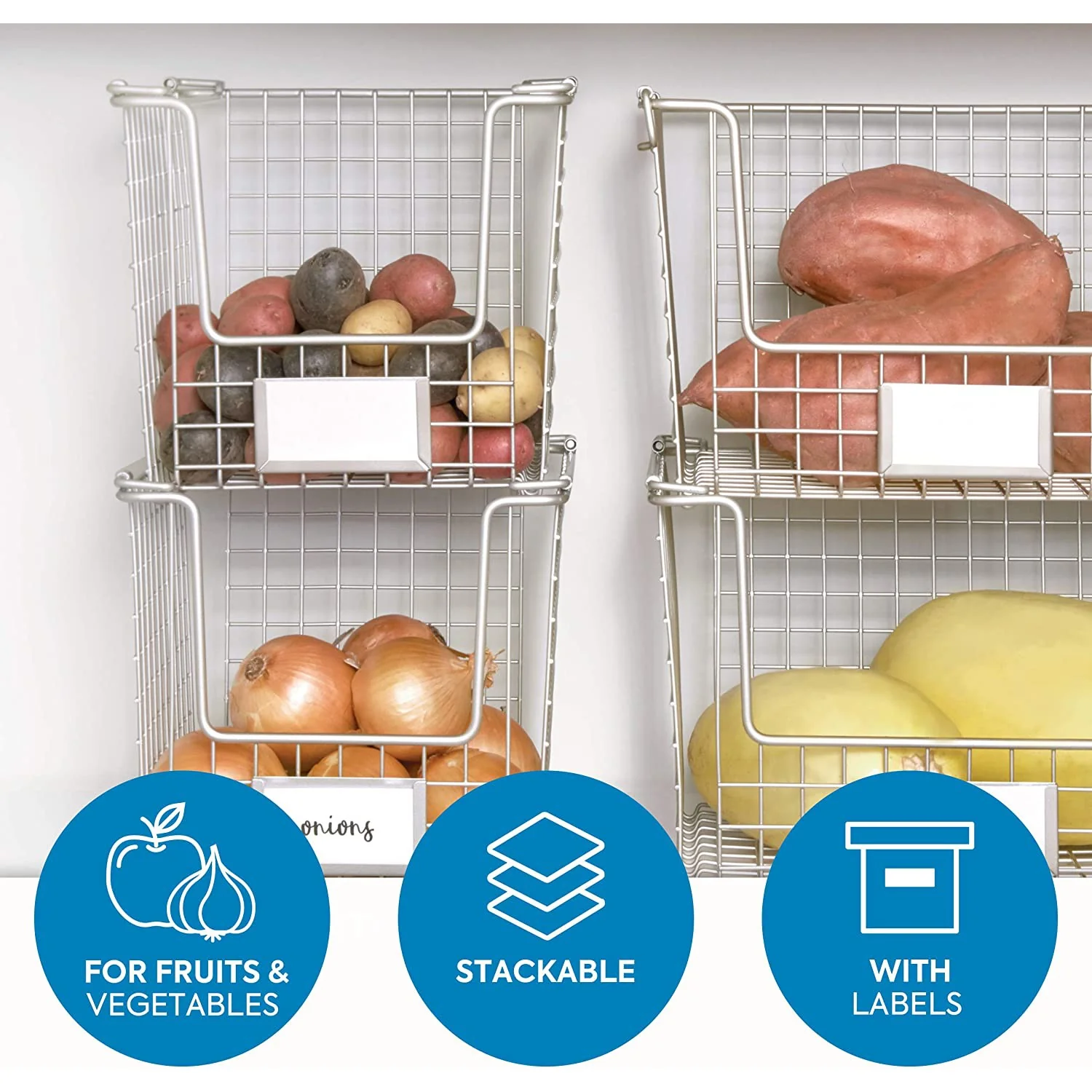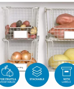 Una de las grandes ventajas de esta canasta es que puedes apilar varias bandejas, optimizando al máximo el espacio. Fabricada en acero resistente al óxido, garantiza durabilidad y una larga vida útil. Además, es ligera y fácil de transportar gracias a sus dos cómodas asas laterales. ¡Mueve tus cosas de una habitación a otra sin problemas!