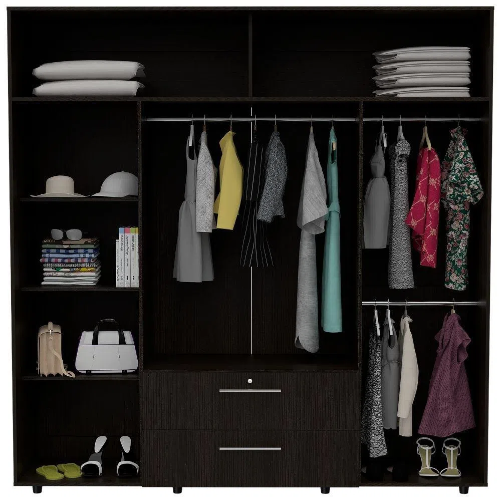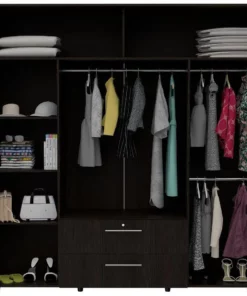Fabricado con materiales MDF de alta calidad, este ropero no solo es resistente y duradero, sino también respetuoso con el medio ambiente. Nos preocupamos por tu salud y la de tu familia, por eso este closet está diseñado con materiales seguros y no tóxicos. El acabado en color wengue le dará a tu habitación un toque sofisticado y acogedor.