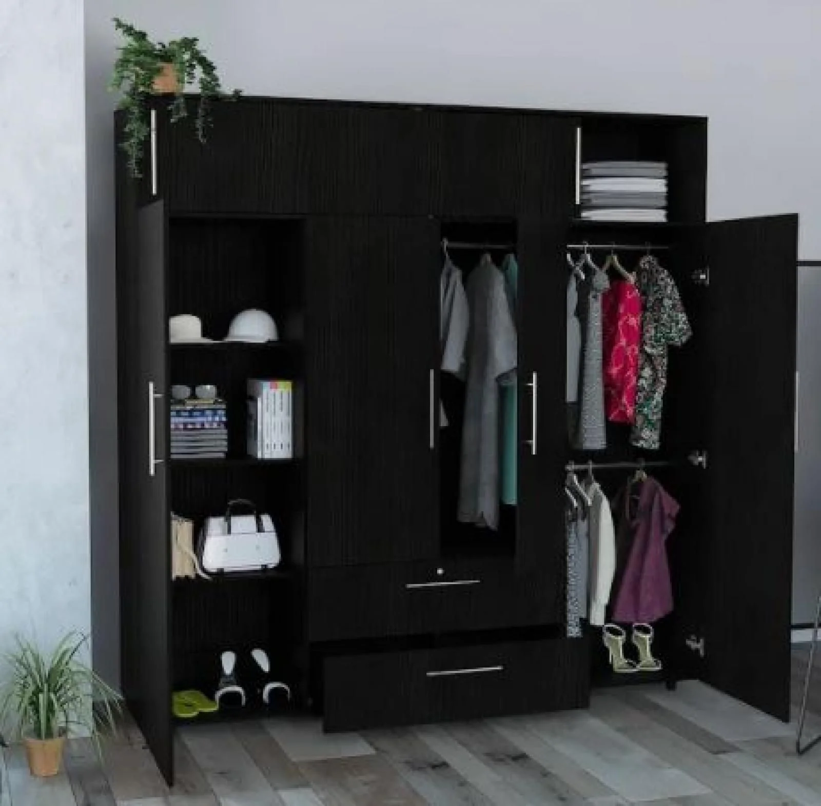 El sistema de apertura abatible de sus puertas facilita el acceso a tu ropa, y su tamaño grande te asegura que nunca te faltará espacio. Aunque requiere ensamblaje, el proceso es sencillo y rápido. ¡No esperes más para darle a tu dormitorio el toque de estilo y funcionalidad que se merece!