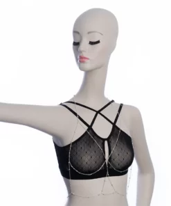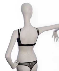 Imagina la suavidad de los hilos entrelazados acariciando tu piel, mientras las cintas se ajustan delicadamente para crear un ajuste perfecto. El color negro intenso realza tu mirada, invitando a la imaginación y al juego. Combínalo con tu lencería favorita y prepárate para una velada inolvidable.