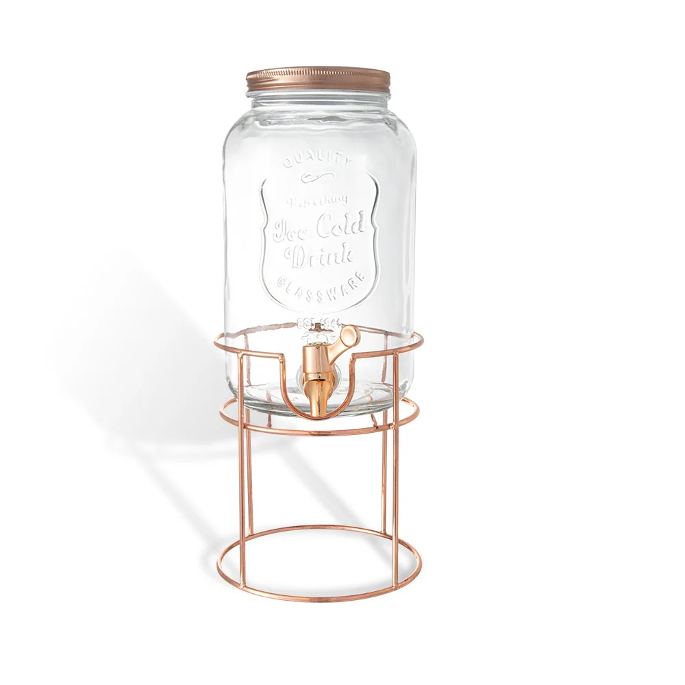 ¡Dale un toque de elegancia y frescura a tus reuniones con nuestro increíble Set De 5 Piezas Dispensador 3.3 Lts Cobre! Perfecto para servir tus bebidas favoritas con estilo, este set es ideal para disfrutar de jugos, limonadas, aguas frescas e infusiones.