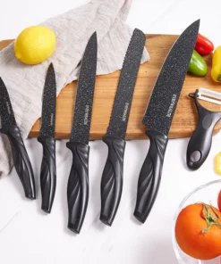 Este juego incluye cuchillos para cada tarea: desde el cuchillo de chef versátil hasta el cuchillo para pelar y el cuchillo para pan. ¡Prepárate para crear deliciosas obras maestras culinarias! No esperes más, ¡añade este increíble juego de cuchillos a tu cocina hoy mismo! Perfecto como regalo para amantes de la cocina. Compra ahora y disfruta de una experiencia de corte superior.