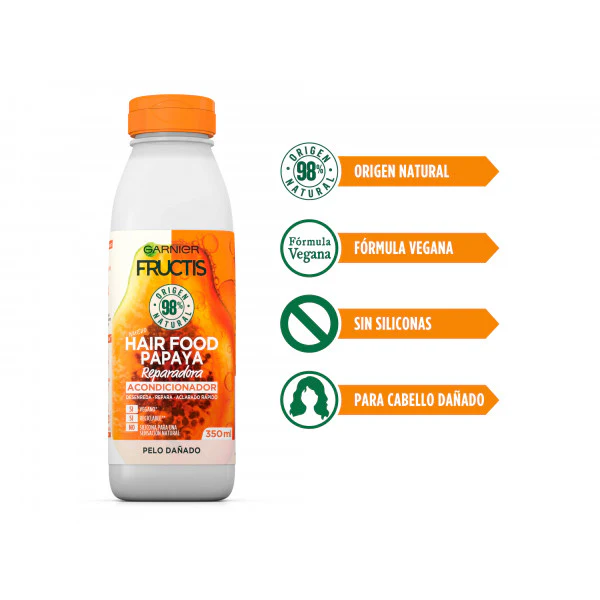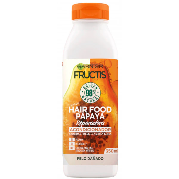 ¿Cansada del pelo seco y dañado? ¡Tenemos la solución perfecta! Descubre el Acondicionador Hair Food Papaya Reparadora 350 ml de Garnier Fructis, un chute de nutrición e hidratación que te enamorará. Imagina un cabello suave, brillante y lleno de vida, ¡como recién salido de la peluquería!