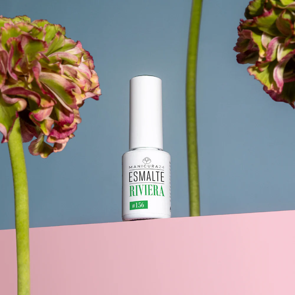 Esmalte Permanente RIVIERA #156 es tu aliado perfecto para una manicura reluciente y durable. Este esmalte de color verde medio-intenso, parte de la hermosa colección Always Blooming de Manicura24, asegura un acabado impecable que dura al menos dos semanas. Nuestro compromiso con el medio ambiente es fuerte, por lo que este esmalte es ecofriendly y hecho con ingredientes seguros, cuidando tanto tu salud como el planeta.