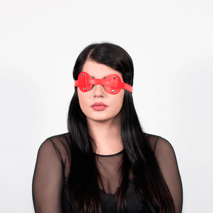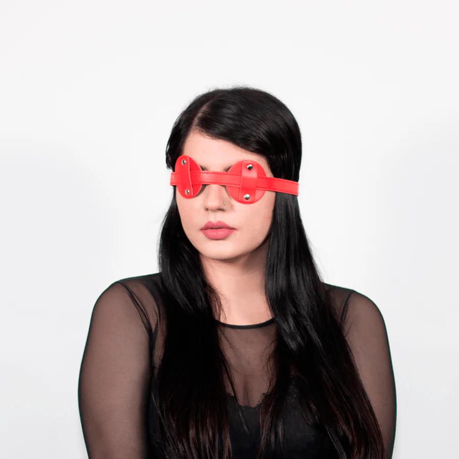 Tapaojos Cuero Rojo cumple con las normas para materiales seguros a utilizar en la práctica del BDSM. Es ecológico y sostenible. Es la mejor elección para ti.